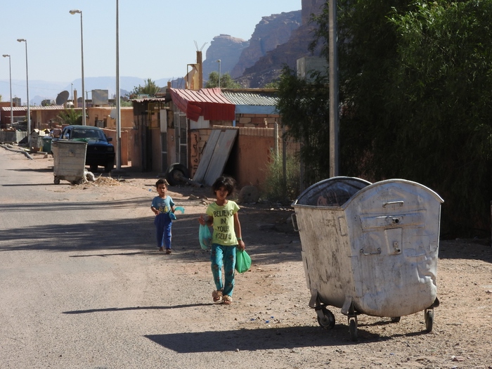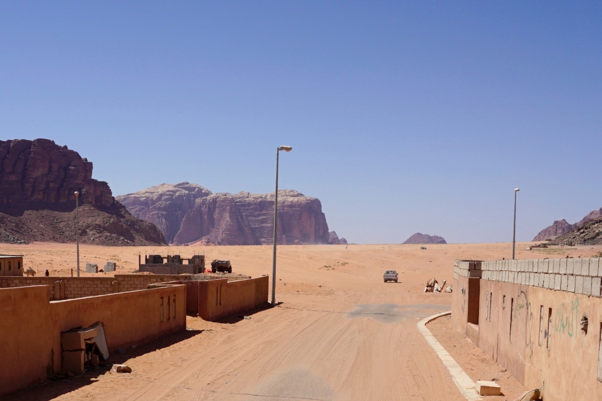 El pueblo de Rum son unas pocas casas donde se ha establecido una pequeña comunidad de beduinos que organizan su vida alrededor de la actividad que genera el turismo del desierto. Hay un albergue, un restaurante y un par de tiendas de alimentación. También es donde termina el asfalto y empieza el desierto propiamente dicho.