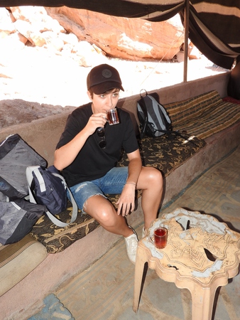 Llegamos al Centro de Visitantes hacia las 9:00, realizamos el trámite de registro y nos sellaron el Jordan Pass. Como nosotros teníamos ya una reserva en el Beyond Wadi Rum Camp a través de Booking, seguimos camino hasta el pueblo de Rum donde contactamos con la agencia de nuestro campamento. Salman, el dueño de la agencia, nos ofreció un té mientras nos explicaba las diferentes actividades que se podían realizar en el desierto.