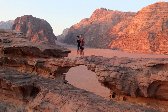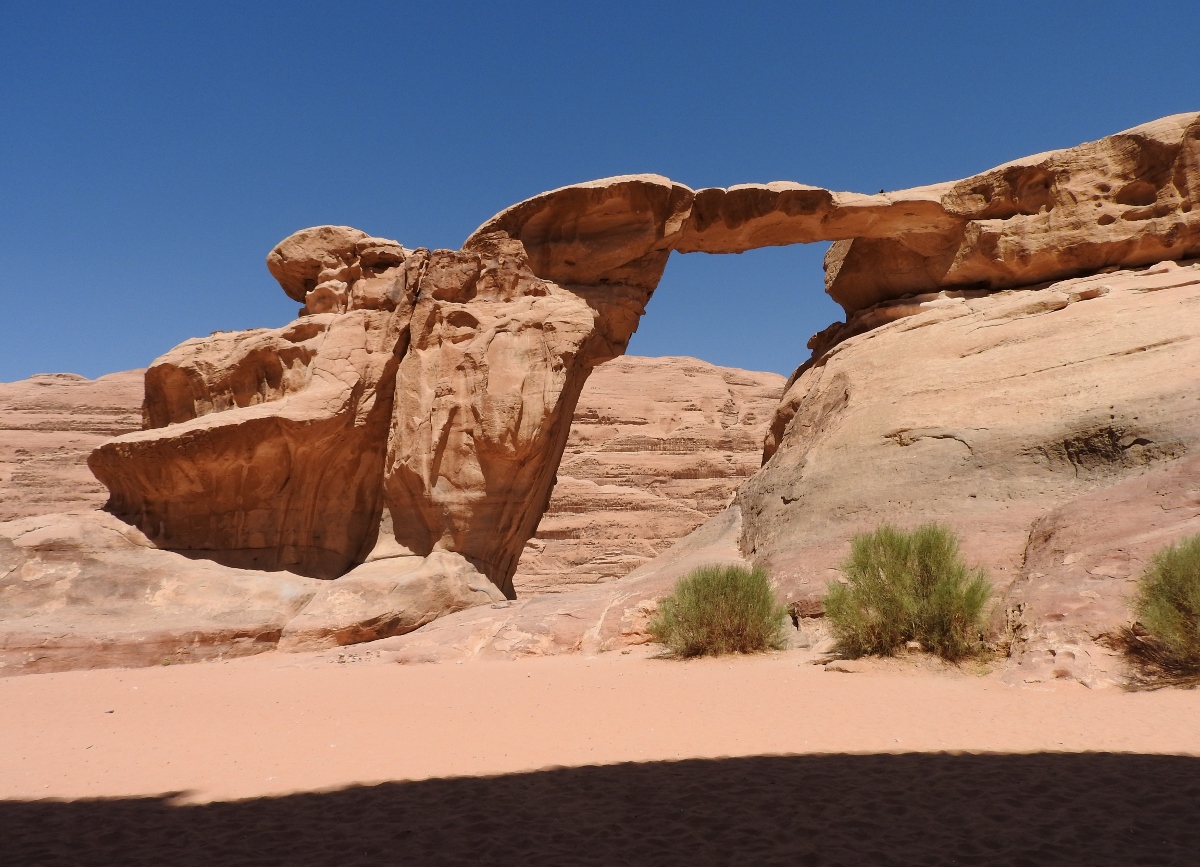 En nuestra ruta partimos del pueblo de Rum y visitamos el Manantial de Lawrence de Arabia, la duna roja de Al Ramal, el cañón Khazali, el puente de roca Um-Fruth, el Cañon Abu Khashaba, vimos de lejos el puente Burdah y finalmente contemplamos la puesta de sol desde el Little Bridge.