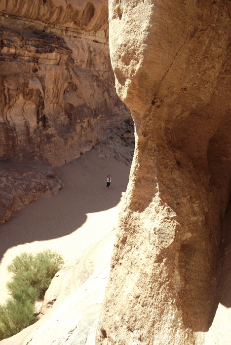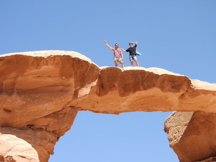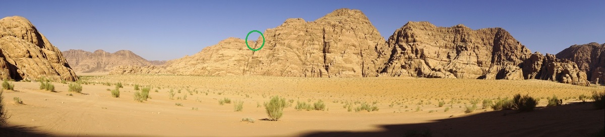 Eran ya las cuatro y pico de la tarde. El cansancio y el calor ya nos empezaban a pesar un poquito, sobre todo teniendo en cuenta que veníamos de dos días a ritmo fuerte en Petra. Le dijimos a Mutter que estábamos agotados y nos dijo que sólo quedaba una parada antes de ir al campamento, para ver desde lejos la panorámica de las montañas donde se encuentra el Puente Burdah.