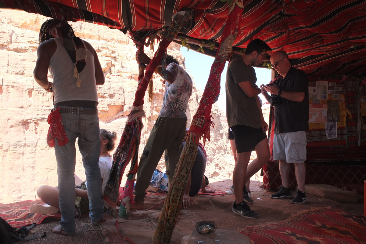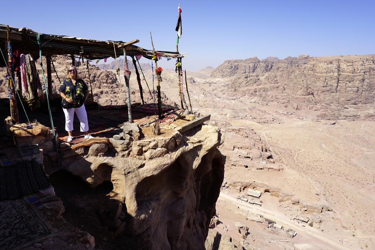 Cuando llegó a la plataforma del mirador los beduinos que la ocupaban le pidieron alguna propina, pero como él no llevaba dinero le dejaron pasar igualmente (tal vez porque esa "mordidita" no parece muy legal).