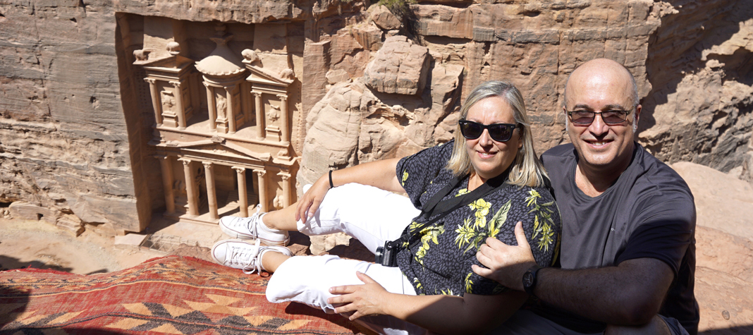 La excursión al Mirador del Tesoro la hicimos el primer día por la mañana. Habíamos leído la importancia de llegar entre las 9 y las 11 para encontrar la mejor luz sobre la fachada y también ayuda a hacer el camino sin el sol en lo alto (aunque, recordad, en Jordania no hay decalaje horario; así que las 12h son las 12 solares).