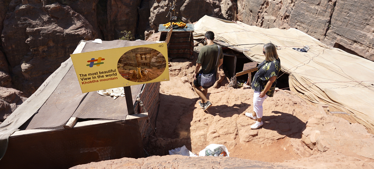 "The most beautiful view in the World" ("La vista más hermosa del mundo") reza el cartel que los beduinos han instalado a la entrada de la jaima. Bueno, el mundo es muy grande y está lleno de vistas hermosas, pero estamos de acuerdo en que ésta, sin duda, entra en el Top y justifica en un instante toda la ascensión realizada.