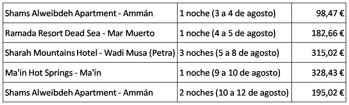 taxis el último día para movernos por Ammán y algunas propinas y regalos.