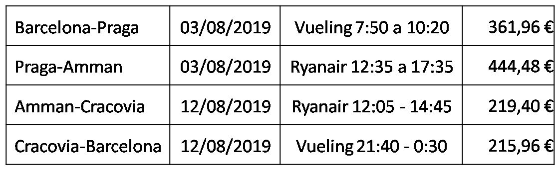 mitad de precio. A la ida hicimos Barcelona-Praga-Ammán y a la vuelta